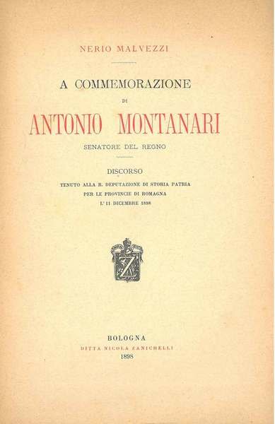 A commemorazione di Antonio Montanari senatore del regno. Discorso tenuto alla R. Deputazione di storia patria per le provincie di Romagna l'11 dicembre 1898