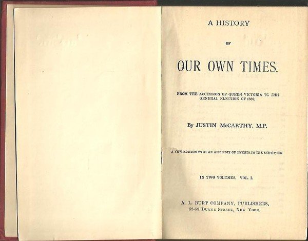 A HISTORY OUR OWN TIMES. FROM THE ACCESSION OF QUEEN VICTORIA TO THE GENERAL ELECTION OF 1880.