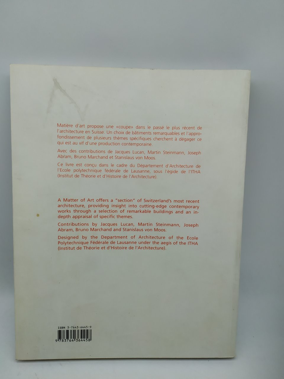 a matter of art contemporary architecture in switzerland matiere d'art en suisse . , birkhauser english, pp.208 ^^^