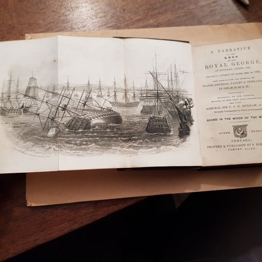 A Narrative of the Loss of the Royal George at Spithead, August, 1782; Tracey's Attempt to Raise Her in 1783; Her Demolition and Removal By Major-General Pasley's Operations in 1839-40-41-42 & 43; Including a Statement of Her Sinking. Bound in the wood of the wreck.