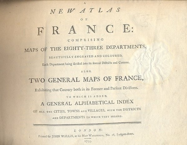 A new Atlas of France: comprising maps of the eighty-three departments, beautifully engraved and coloured, each Department being divided into its feveral districts and cantons. Also two general maps of France, exhibiting that Country both in its former and present divisions. To which is added a general alphabetical index of all the cities , towns and villages , with the districts and departments to which they belong.