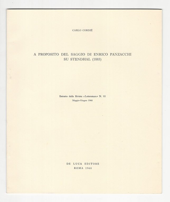 A proposito del saggio di Enrico Panzacchi su Stendhal (1885). Estratto dalla Rivista "Letteratura", n. 93.