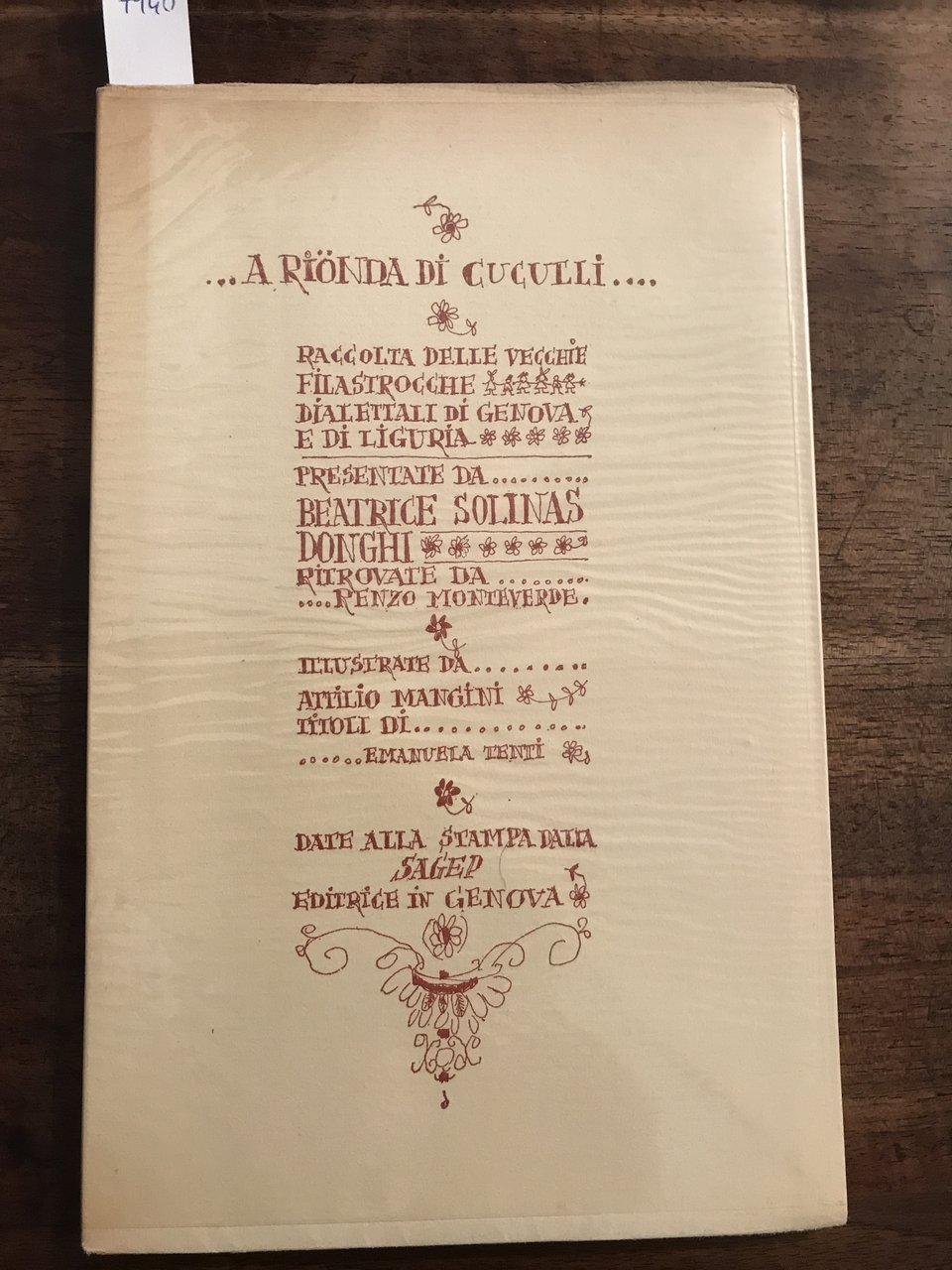 .A rionda di cuculli . raccolta delle veccie filastrocche dialettali di Genova e di Liguria. Presentate da Betarice Solinas Donghi, ritrovate da Renzo Monteverde e illustrate da Attilio Mangini