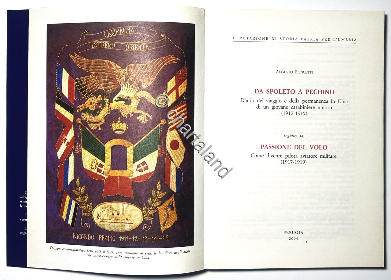 A. Roncetti - Da Spoleto a Pechino: Diario del Viaggio e della permanenza in Cina di un giovane carabiniere umbro ( 1912-1915 ) - Passione del Volo: Come divenni pilota aviatore militare ( 1917-1919 ) - ed. 2004 Testo in lingua italiana. Pagine 56 di testo, 137 tavole illustrate ( Album fotografico ) Copertina morbida. Condizioni molto buone.