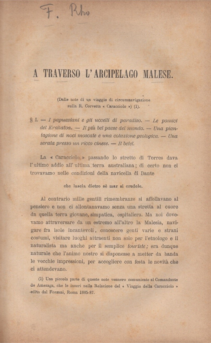 A Traverso l'arcipelago malese: dalle note di viaggio di circumnavigazione sulla R.Corvetta "Caracciolo"
