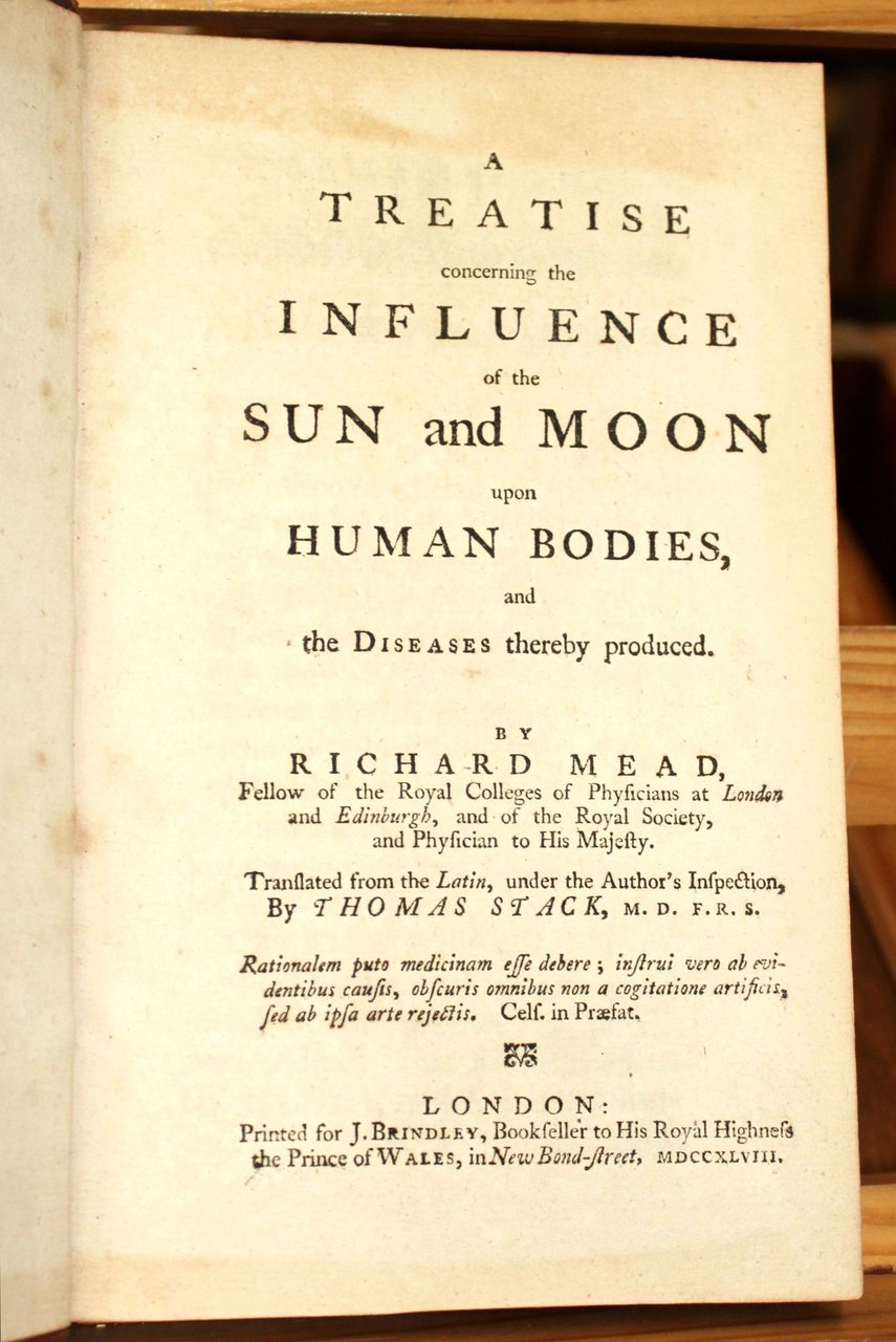 A treatise concerning the influence of the Sun and Moon upon human bodies, and the Diseases thereby produced. Translated from the Latin by Thomas Stack | Libri antichi e moderni | Mead, Richard