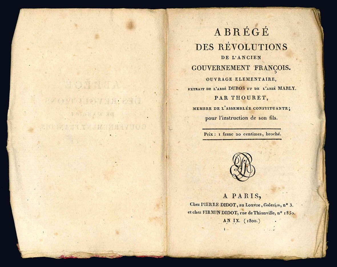 Abrégé des révolutions de l'ancien gouvernement françois.Ouvrage elementaire, extrait de l'abbe Dubos et de l'abbe Mably. Par Thouret, membre de l'assemblee constituante; pour l'instruction de son fils.