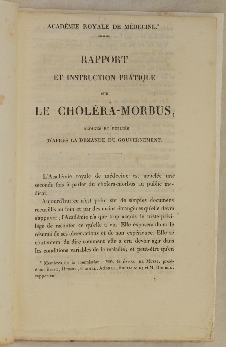 ACADEMIE ROYALE DE MEDECINE RAPPORT ET INSTRUCTION PRATIQUE SUR LE CHOLERA MORBUS