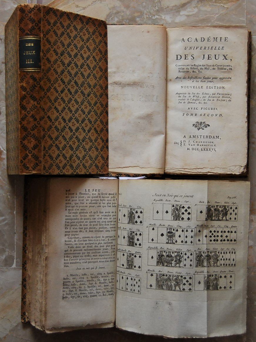 ACADEMIE UNIVERSELLE DES JEUX, CONTENANT LES REGLES DES JEUX DE CARTES PERMIS CELLES DU BILLARD, DU MAIL, DU TRICTAC, DU REVERTIER. NOUVELLE EDITION AUGMENTEE DU JEU DES ECHECS,