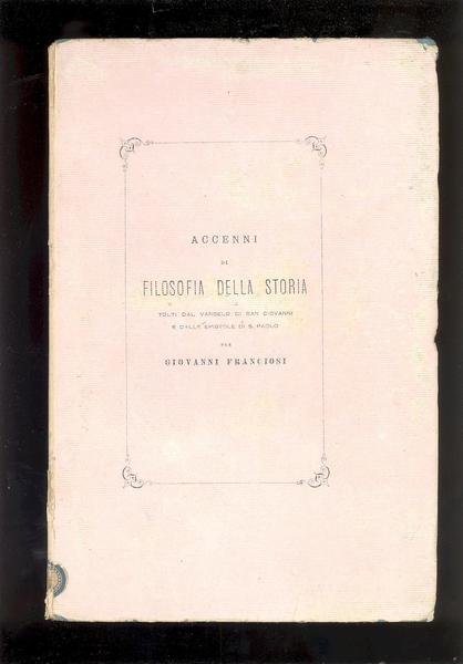 ACCENNI DI FILOSOFIA DELLA STORIA TOLTI DAL VANGELO DI SAN GIOVANNI<BR> E DALLE EPISTOLE DI SAN PAOLO