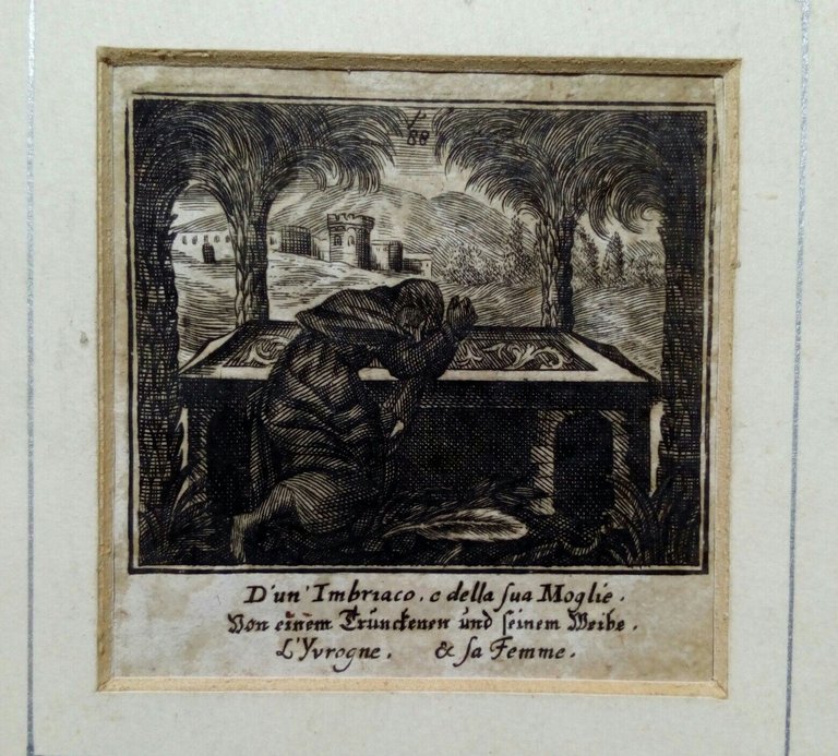 acquaforte seicentesca originale da "le favole di La Fontaine"