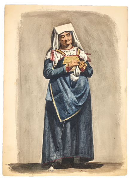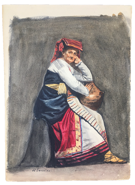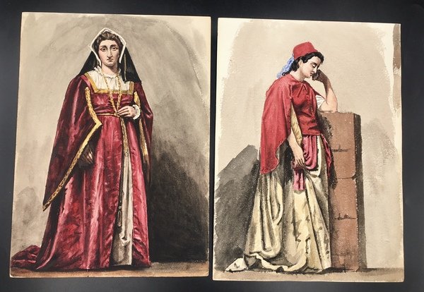 ACQUERELLI ORIGINALI, 3 di COSTUMI LAZIALI + 3 VEDUTE di TIVOLI + 10 COSTUMI TEATRALI