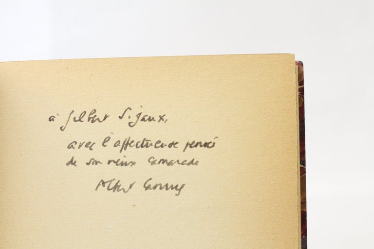 Gallimard | Paris 1953 | 12 x 19 cm | relié | First edition, an advance (service de presse) copy. A few reading notes in the margin. Bradel binding in half morocco, covers preserved, top edge gilt, binding signed by P. Goy & C. Vilaine. Autograph inscription signed by Albert Camus to Gilbert Sigaux : AVec l'affectueuse pensée de son vieux camarade. * [FRENCH VERSION FOLLOWS] | Edition originale, un des exemplaires du service de presse. Quelques marques de lectures dans les marges. Reliure à la bradel en demi maroquin rouge framboise, dos lisse, date en queue, plats de papier marbré, couvertures conservées, tête dorée, reliure signée de P. Goy & C. Vilaine. Envoi autographe signé d'Albert Camus à Gilbert Sigaux, compagnon de Combat : . avec l'affectueuse pensée de son vieux camarade.
