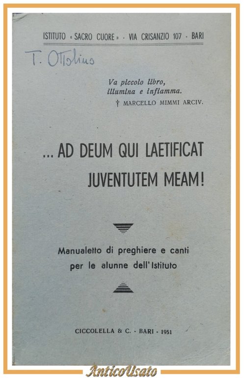AD DEUM QUI LAETIFICAT JUVENTUTEM MEAM Bari Sacro Cuore 1951 manualetto preghier