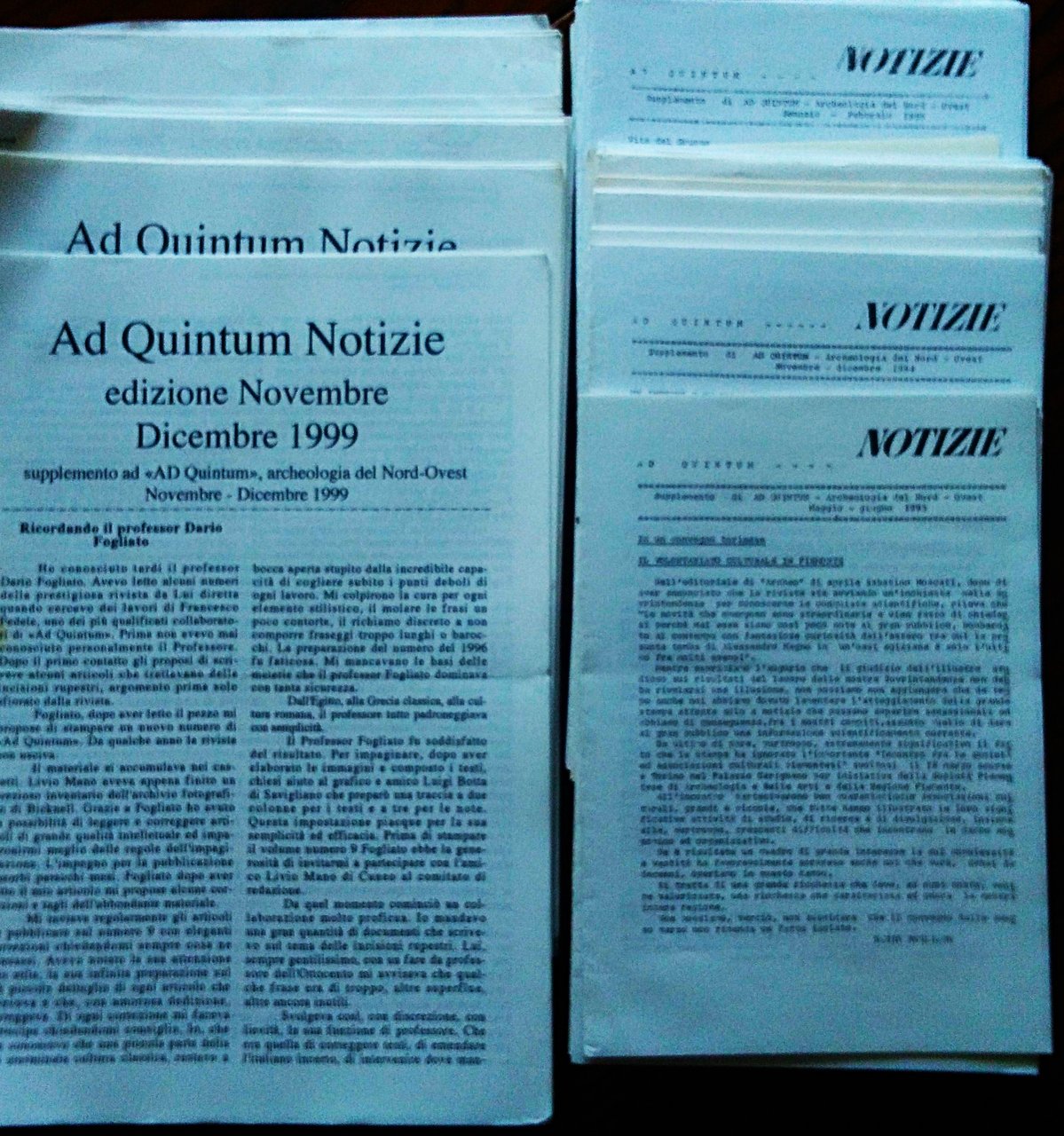 Saluzzo, Mondovì, 1970- 1996. 8°, nove fascicoli consecutivi, pp. 53; 85; 69; 100; 80;77; 117; 100; 96, illustrazioni, brossure editoriali. Belle copie. Si aggiungono 37 numeri di Ad Quintum Notizie dal 1992 al 1999 e 4 supplementi dal Dicembre 1999 a Marzo 2001.