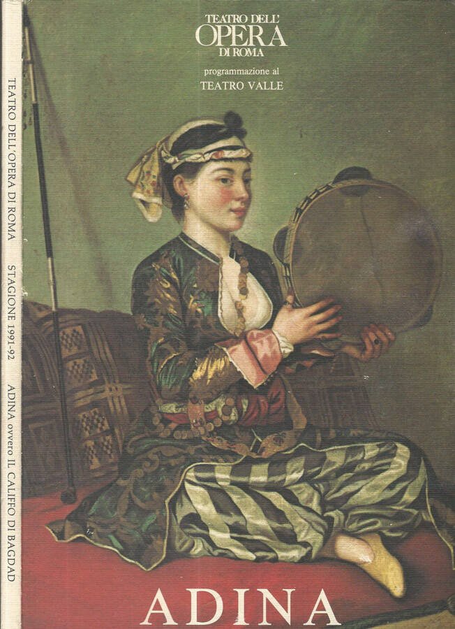 Volume di presentazione dell'opera, Adina, andata in scena al Teatro dell'Opera di Roma nella stagione 1991-92. Brossura illustrata, con lievi segni d'uso. Interno integro, con testo a due colonne ed ampliamento illustrato a colori ed in bianco e nero, anche a doppia pagina. Numero pagine 78.