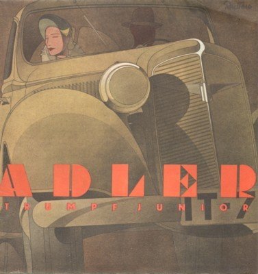 Farbiger Faltprospekt mit drei Originalbeilagen. Gr.-8°, aufgefaltet 45 x 86 cm. Im Druck von Reuters signiert. Die Beilagen sind: 1. 1 : 2 = Kraft : Nutzraum! Wie ein modernes Automobil gebaut wird!, Adlerwerke 1936, auf Pergaminpapier, gefaltet. 2. Was das Ausland sagt. Ingenieur Rudolf Hanke aus Porto Alegre, Adlerwerke 1938, auf Pergaminpapier, gefaltet. 3. Adler-Triumpf-Junior. Preis-Aufstellung, Adlerwerke o. J., ca. 1938. - Gut erhalten, nur wenig knitterspurig. - The indicated shipping costs refer to books weighing up to one kilogram. - Bücher, die schwerer als ein Kilogramm oder größer als 35 x 25 cm sind, werden als Paket verschickt und kosten innerhalb Deutschlands bis zu zwei Kilogramm 6 Euro, darüber hinaus 7 Euro Porto. -