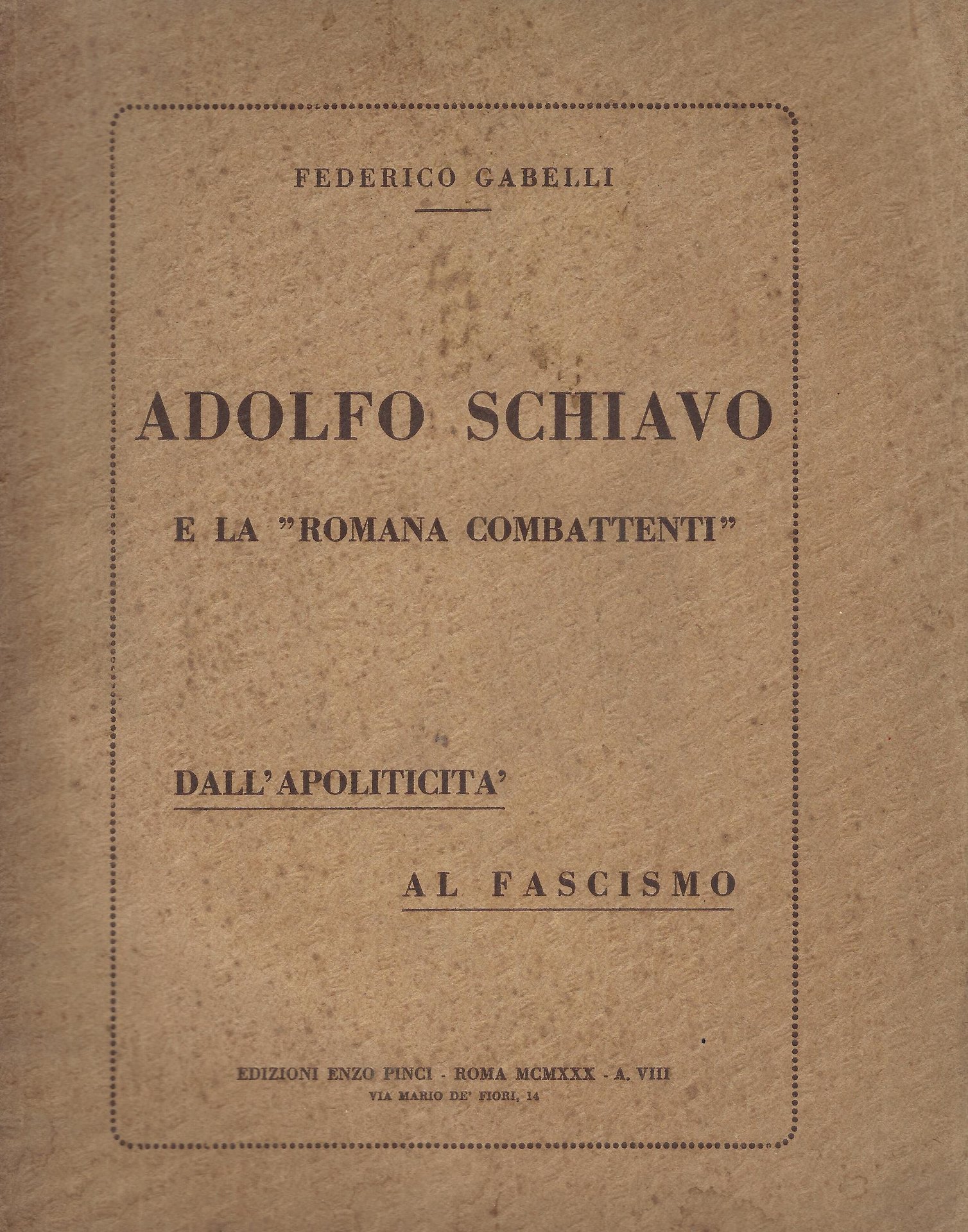 Adolfo Schiavo e la Romana Combattenti dall'apoliticità al fascismo