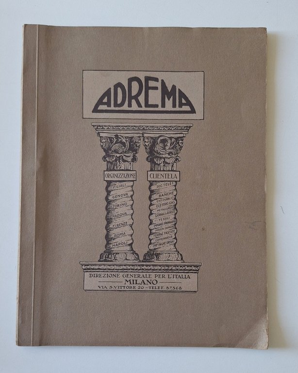 ADREMA MACCHINE PER INDIRIZZI CATALOGO TIP. LUCINI ANNI '20In 4°, legatura editoriale, copertina illustrata, ill. in b/n.Lievissimi segni alla copertina. Pagine fresche e pulite.TUTTI I NOSTRI LIBRI SONO VISIBILI PREVIO CONTATTO MAIL, TELEFONO O WHATSAPP NELLA NUOVA SEDE DI MILANO: LIBRERIA COSMOPOLIS, VIA JOMMELLI 22, MILANO.3313109672