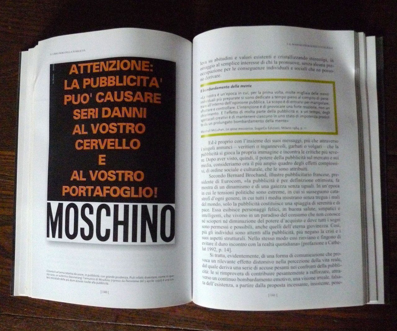 Adriano Zanacchi,IL LIBRO NERO DELLA PUBBLICITÀ.Potere e prepotenze della pubblicitàsul mercato, sui media, sulla cultura.Iacobelli Edizioni, Pavona di Albano Laziale (Roma) 2010,brossura, 23x16 cm., pp.285,illustrazioni a colori,PARLIAMONE / 1,ISBN: 978-88-6252-087-4,peso: g.750cod.9960CONDIZIONI DEL LIBRO: buone,pieghe ed imperfezioni alla copertinae alle pagine,sottolineature con evidenziatore in 5 pagine