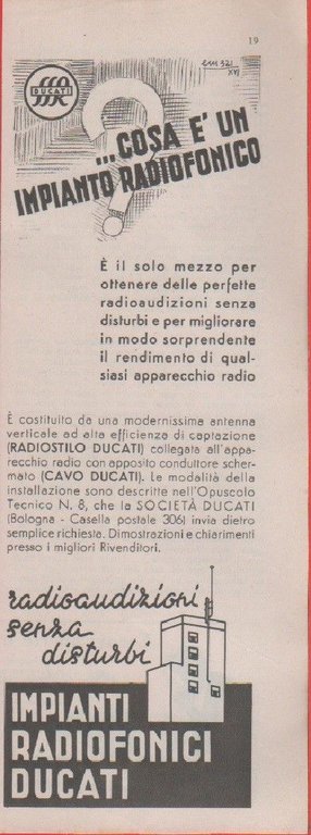 Advertising - Impianti Radiofonici Ducati - Pubblicità 1938