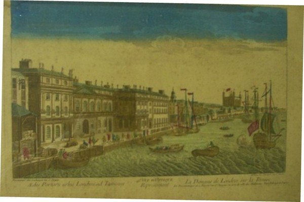Aedes Portorii urbis Londini ad Tamesim. 41^ Vue d'Optique, Representant la Douane de Londres sur la Tamise.