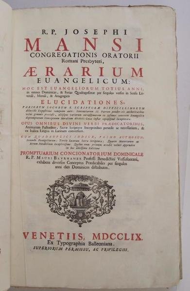 Aerarium evangelicum: hoc est evangeliorum totius anni, in omnes dominicas, & ferias quadragesimae per singulos versus in sensu litterali, morali, e anagogico elucidationes; variorum locorum S. Scripturae difficillimorum dilucida expositione…