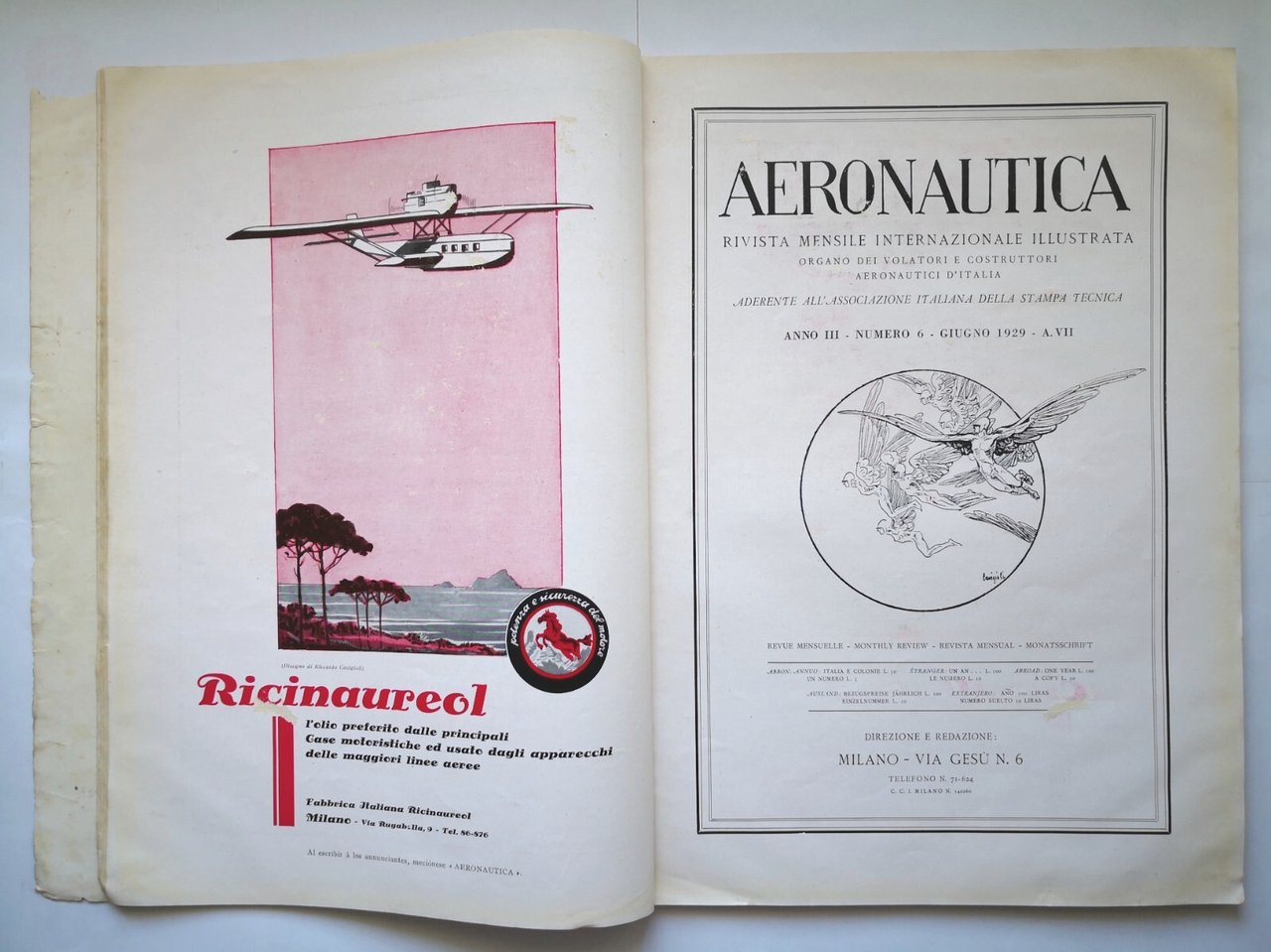 AERONAUTICA giugno 1929 rivista mensile internazionale illustrata aerei volo