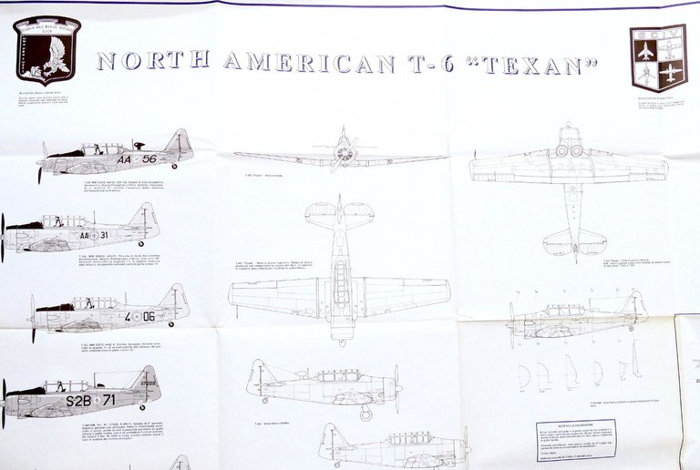 *** Aeronautica Modellismo AereoDisegni tecnici modello North American T-6 Texan - Inserto redazionale alla Rivista Aeronautica N° 2 marzo - aprile 1990 - Unico foglio ripiegato piu volte con illustrazioni e spiegazioni. Dimensioni foglio: 83 x 114 cm ca.  Per appassionati e collezionisti