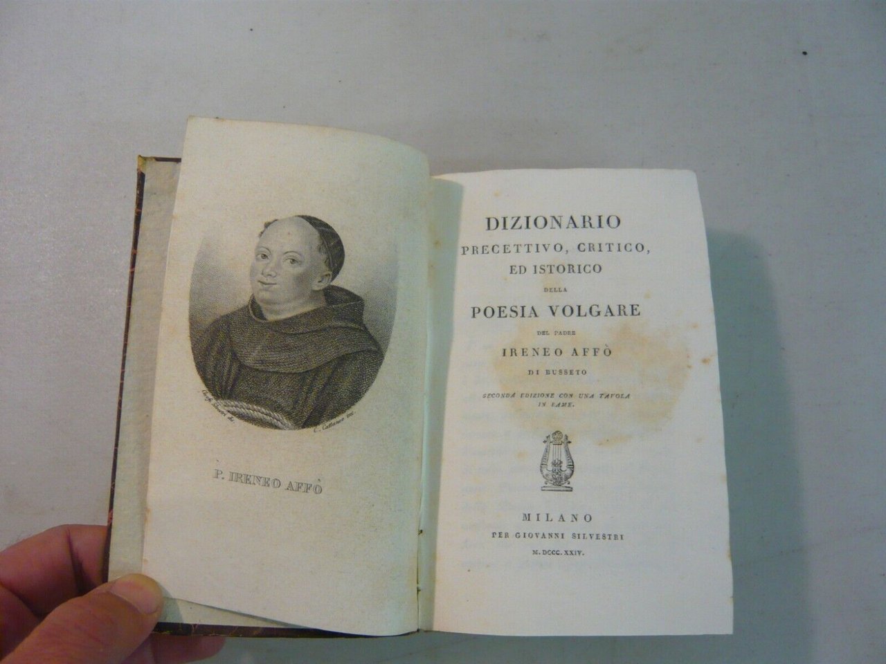 con ritratto di Affò, disegnato da Silvestri ed inciso da Cattaneo;