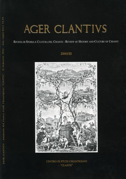 Ager Clantius. Rivista di storia e cultura del Chianti. 2003/II. Dall'indice: Una allegoria del Chianti del 1874. I ritrovamenti archeologici nel Chianti nella prima età Medicea. Il Chianti di fine millennio. Il convento francescano di Radda e il "Canto Fratto". Chianti in progress. Le tappe dell'espansione topografica del Chianti. Il Chianti com'era. Testimonianze fotografiche delle trasformazioni recenti dell'ambiente chiantigiano.