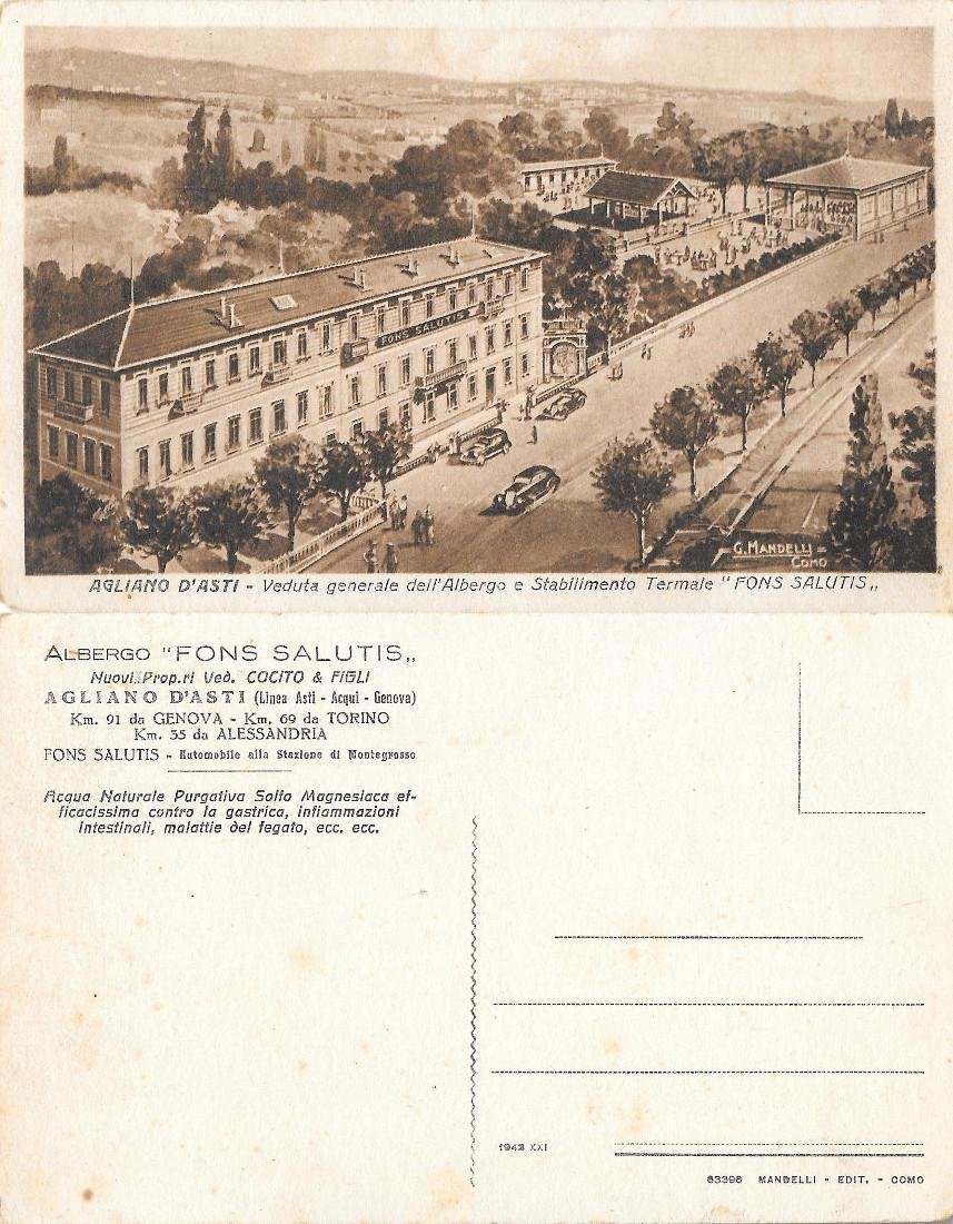 Agliano d'Asti. Albergo Fons Salutis. Non viaggiata, originale 1943
