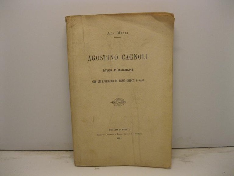 Agostino Cagnoli. Studi e ricerche con un'appendice di versi inediti e rari