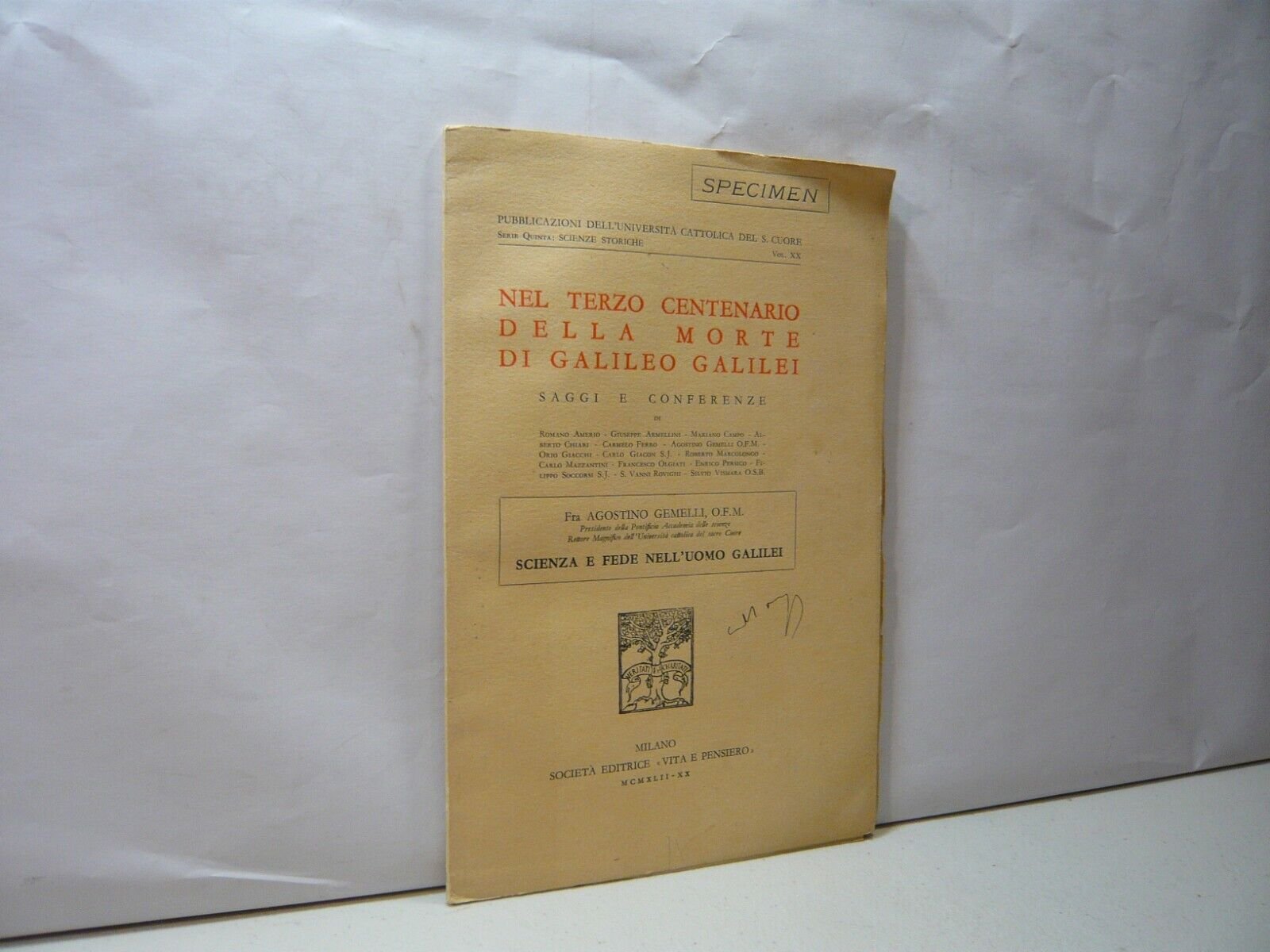 Agostino Gemelli,SCIENZA FEDE NELL’UOMO GALILEI,Vita e Pensiero, Milano 1942