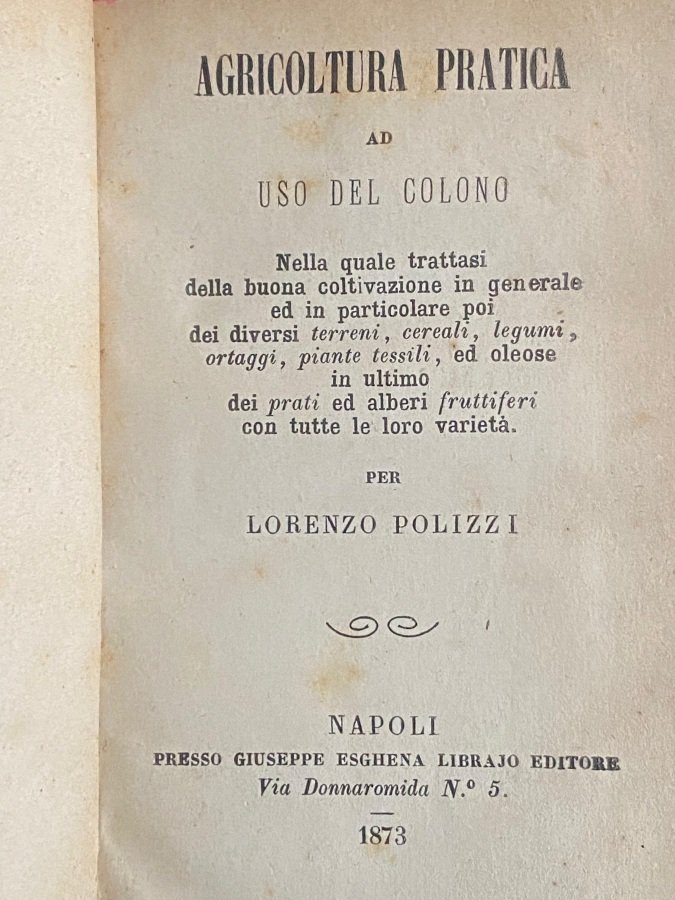 Agricoltura pratica ad uso del colono, nella quale trattasi della buona coltivazione in generale ed in particolare poi dei divesi terreni, cereali, legumi, ortaggi [.].