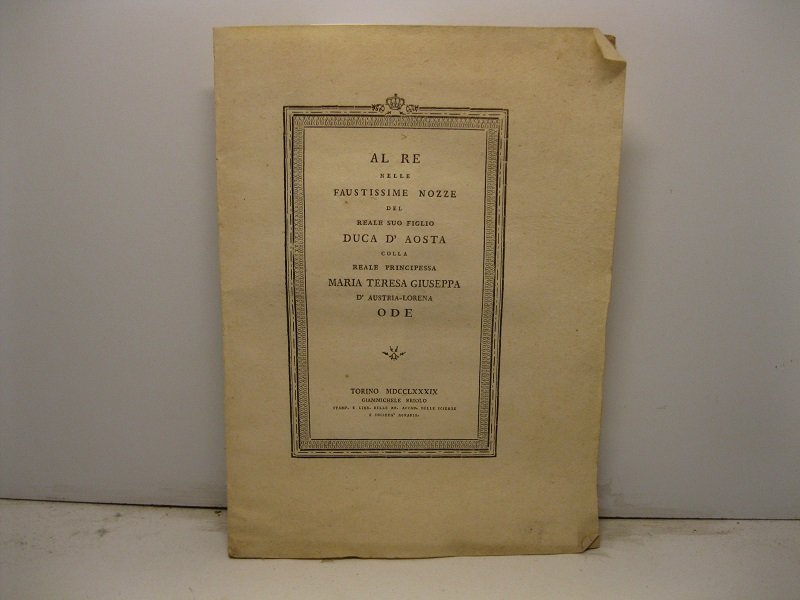 Al Re nelle faustissime nozze del Reale suo figlio Duca d'Aosta colla Reale Principessa Maria Teresa Giuseppe D'austria Lorena. Ode