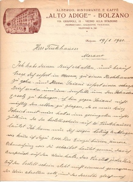 Albergo, ristorante e caffè ”Alto Adige”: Bolzano.