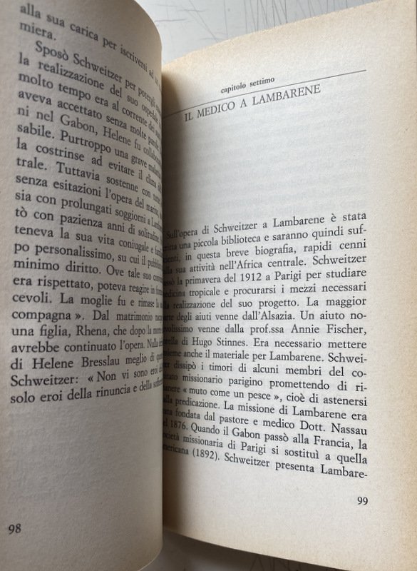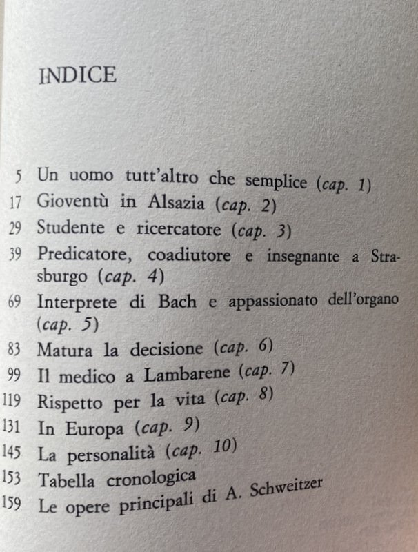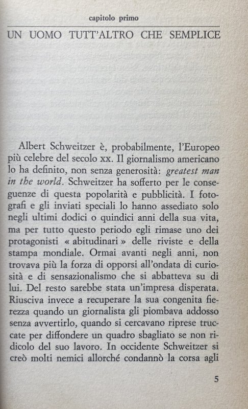 Soggetti: Biografie, Memorie, Predicatori, Missionari, Germanistica, Premio Nobel per la pace, Teologia, Filantropia, Africa, Bach, C. H. Beck, Cristianesimo, Etica, Escatologia, Vangelo, Günsbach, Critica, Cultura, Lambarene, Sofferenza, Medici, Musicisti, Filantropi tedeschi, Monaco, Musica, Natura, Parigi, Filosofia, Politica, Predicazione, Evangelizzazione, Bibbia, Organo, Opere caritatevoli, Scritti, Sermoni, Discorsi, Religione, Strasburgo, Teologi, Giungla, Saggi, Visione del mondo, Scienza, Conoscenza, Persönlichkeit, Geschichte, Theologischen, Menschen, Philosophie, Politik, Predigt, Ethik, Leben, Weltanschauung, Wissenschaft, Joseph Gollomb, Biographie, Nils Ole Oermann, Out of my Life and Thought, Intellettuali, Movimento antinucleare, Pacifismo, Pacifisti, Medicina, Germania dell'Est, Adolf von Harnack, Bähr, Berlino, Brabazon, C. T. Campion, Central Archive, Infanzia, Gioventù, Chiesa, Cristianesimo, Der Spiegel, Francese, Gabon, Gerald Götting, Goethe, Günsbach, Hammarskjöld, Harnack, Havemann, Helene Bresslau, Helene Schweitzer, Jesus, Kant, Lezioni, Lettere, Mougin, Munz, Misticismo, Nietzsche, Ogowe River, Organista, Organisti, Pastore, Pazienti, Intervista, Filosofia, Civiltà, Poteau, Riverenza, Foresta primordiale, Régnants, Rhena, San Tommaso, Harald Steffahn, Theodor Heuss, Pensiero, Università, Tubinga, Widor, Wyss, Meditazioni, Storie africane, Rispetto per la vita, Albert Einstein, Novecento, Kultur/Zivilisation, Crisi, Occidente, Filosofie orientali, Antropocentrismo, Umanità, Ideali, Responsabilità, Mistica, San Paolo, Poveri, Ammalati, Urwald, Preludio, Fuga, William Wrede, Bibliografia, Riferimento, Consultazione, Collezionismo, Rarità librarie, Libri rari Vintage fuori catalogo, Messia, Leben, Rudolf Bultmann, David Friedrich Strauss, Martin Butzer, Oskar Kraus, Werner Picht, Oskar Pfister, Sigmund Freud, Gandhi, Martin Dibelius, Ebraismo, Giudaismo, Enoch, Studi religiosi, Storia africana, Hugo Stinnes, Affare Dreyfus, Cosima Wagner, Siegfried, Romain Rolland, Roman Brodmann, Guarigioni, Indigeni, Tribù locali africane, Malattie, Medicine, Farmaci, Cura, Assistenza, Medici di frontiera, Orfani, Riforma, Pedagogia, Buch, Biographies, Memoirs, Preachers, Missionaries, Germanic Studies, Nobel Peace Prize, Theology, Philanthropy, Christianity, Ethics, Eschatology, Gospel, Criticism, Culture, Suffering, Doctors, Musicians, Philanthropists, Munich, Music, Nature, Paris, Philosophy, Politics, Preaching, Evangelism, Bible, Organ, Charity, Writings, Sermons, Speeches, Religion, Strasbourg, Theologians, Jungle, Essays, Worldview, Science, Knowledge, Intellectuals, Anti-nuclear movement, Pacifism, Pacifists, Medicine, Germany East, Berlin, Childhood, Youth, Church, Christianity, French, Lectures, Letters, Mysticism, Organist, Organists, Pastor, Patients, Interview, Philosophy, Civilization, Poteau, Reverence, Primeval forest, St. Thomas Aquinas, Thought , University, Tübingen, Meditations, African stories, Respect for life, Twentieth century, Crisis, West, Oriental philosophies, Anthropocentrism, Humanity, Ideals, Responsibility, Saint Paul, Poor, Sick, Mysticism, Prelude, Escape, Bibliography, Reference, Consultation, Collecting, Book rarities, Out-of-print rare books, Messiah, Judaism, Judaism, Religious studies, African history, Dreyfus affair, Healings, Indigenous people, Local African tribes, Diseases, Medicines, Drugs, Treatment, Assistance, Frontier doctors, Orphans, Reform, Pedagogy
