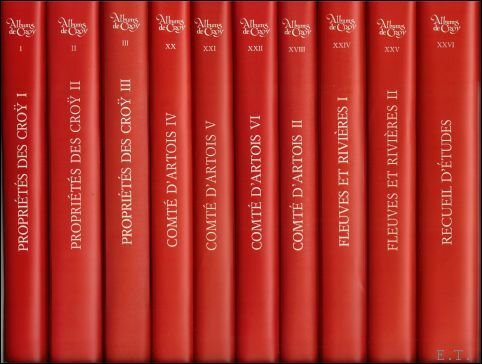 Hardcovers + dusjackets, Relie, plats orne de blason dore, dos orne de titre dore, sous jacquette rouge d' editeur illustre en couleur, 24,5x34cm, *TRES BON ETAT / NEUF! 287pp+376pp+305pp+228pp+277pp+275pp+331pp+305pp+349pp+303pp,232pp+241pp+ 190pp+305pp+224pp+287pp+221pp+214pp+353pp+251pp+279pp+360pp+332pp+333pp+461pp+397pp, + 461pp. illustre en couleur et n/b. text Fran aise. ISBN 2757402897. (all 27 volumes complet; Preface de Francois Narmon. PROPRIETES DES CROY: (1-3), I. Hainaut (Chimay-Beaumont) II. Hainaut (Avesnes), Ardennes francais III. In Brabant, Vlaanderen, Artesie en het Naamse. COMTE DE HAINAUT:(4-10), IV. Generalites (instructions religieuse) V. generalites (villes, pairies, etc.) VI. Prevotes de Mons et Soignies VII. Prevotes de Valenciennes, Chatellenie de bouchain VIII. Chatellenie d' Ath IX. Prevote de Maubeuge, bavay, Quesnoy, Landrecies X. Prevote de binche, bailliages du Roeulx, de Braine-le-Comte, Flobecq et Lessines, Engien, Hal. TOURNAI - TOURNAISIS:(11), XI. Institutions religieuses, villes et villages. LILLE-DOUAI-ORCHIES:(2), XII. Chatellinies de Lille, Douai, Orchies ( 1iere partie) XIII. Chatellinies de Lille, Douai, Orchies ( 2iere partie). COMTE DE NAMUR:(3) XIV. Institution religieuses, villes, mairie de Namur. XV. Bailliages de Bouvignes, Fleurus, viesville, wasseiges. XVI. Mairie de feix, bailliage de Samson, prevote de Poilvache. COMTE D' ARTOIS: (7), XVII. Generalites (Institutions religieuse et villes) XVIII. Gouvernace d' Arras ( 1ere partie) XIX. Gouvernace d' Arras ( 2ere partie) XX. Comte de Saint-Pol ( 1ere partie) XXI. Comte de Saint-Pol ( 2ere partie) XXII. Bailliages de Bethune et Lens XXIII. Bailliages d' Aire, Hesdin, Bapaume, Lillers. FLEUVES ET RIVIERES(1) XXIV. Sambre et Leys. XXIV. Escaut et Scapre. VOLUME FINAL: XXVI. Recueil d' etudes sur les Albums de croy. Table generale. XXVII; Villes et villages de la Belgique espagnole, 1596-1612 (1995) Etat neuf! Jean-Marie Duvosquel (ed.), Albums de Cro , 27 vols., Recueil d' tudes. Table g n rale et index,