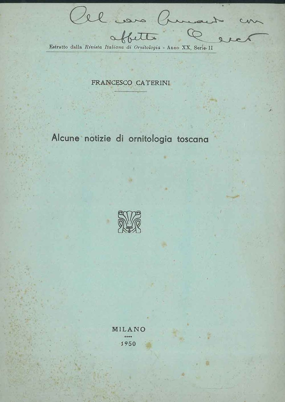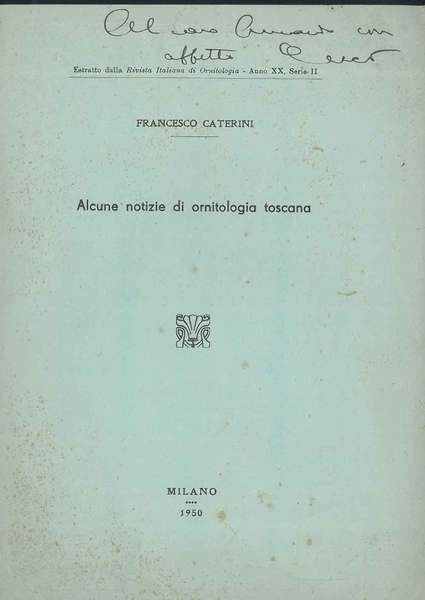 Alcune notizie di ornitologia toscana Estratto dalla Rivista Italiana di Ornitologia, anno xx, serie ii