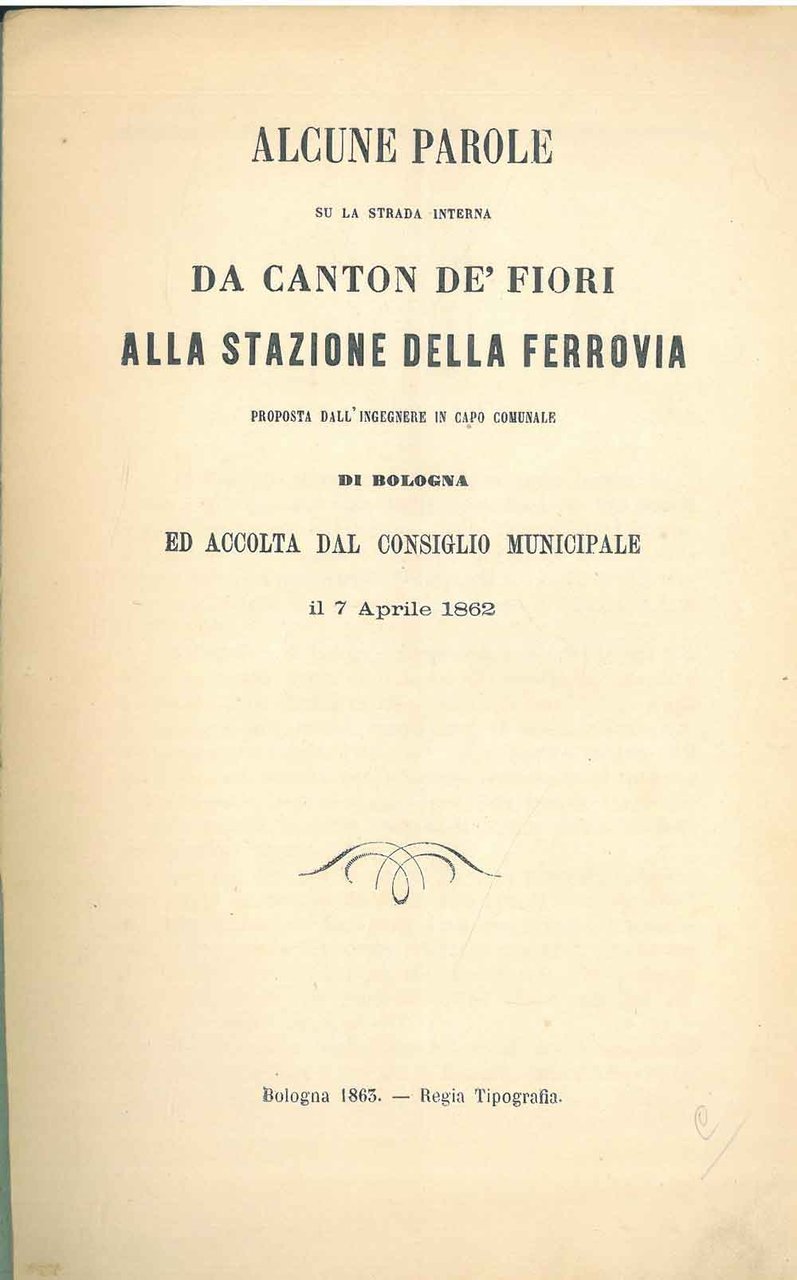 Alcune parole su la strada interna da Canton de' Fiori proposta dall'ingegnere in capo comunale di Bologna ed accolta dal consiglio comunale il 7 aprile 1862