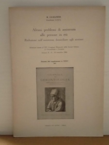 Alcuni problemi di assistenza alle persone in età. Prolusione sull'assistenza domiciliare agli anziani. Estratto dal supplemento n. XXXV del Giornale di Gerontologia.