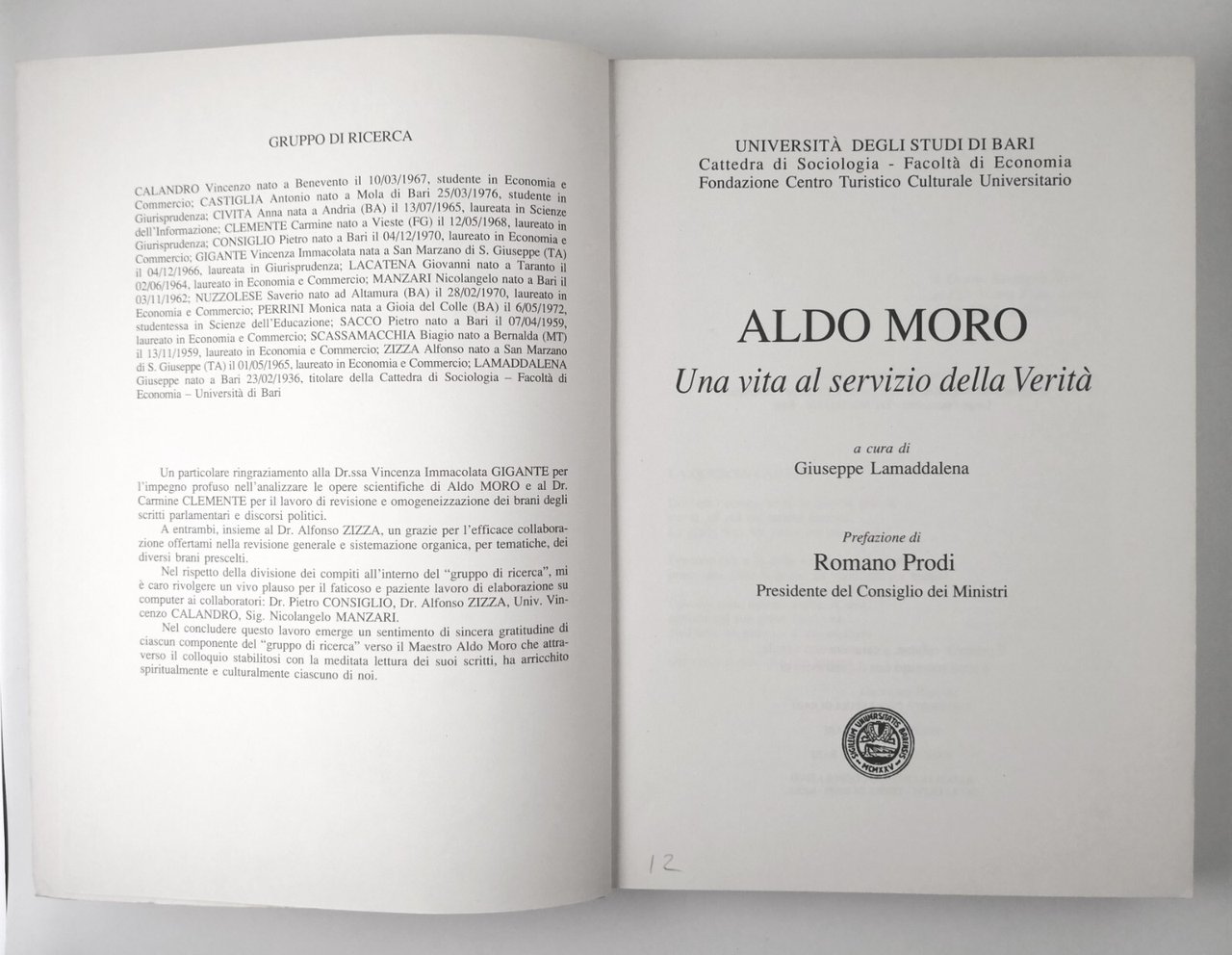 ALDO MORO Una vita al servizio della Verità a cura di Giuseppe Lamaddalena. Prefazione di Romano Prodi.