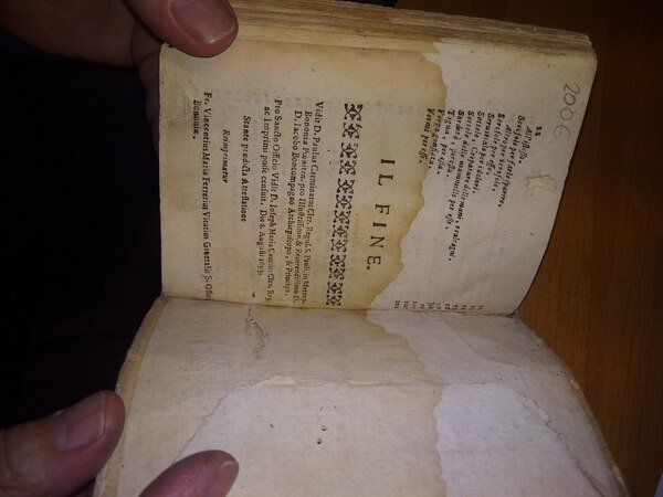 Testo Rilegato In Maniera Grossolana,Essendo Priva Del Dorso, La Rilegatura È Composta Dai Tagli Della Copertina Attaccati Insieme Con La Carta Usata Per I Lavori Di Legatura. Il Testo Presenta Numerose Macchie Di Umidità, E Diversi Fori Di Tarlo. Alla Fine Del Testo È Presente Una Piccola Aggiunta Di 22 Pagine Che L'autore Ha Scritto Dopo Aver Stampato Il Volume.