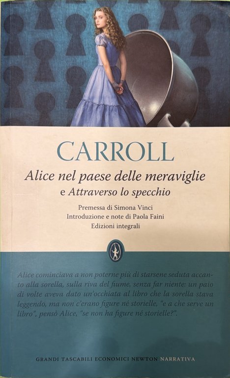 A oltre un secolo dalla sua pubblicazione, Alice, come romanzo e come personaggio, conserva ancora intatta tutta la sua freschezza, incantando non solo i più giovani ma anche gli adulti, che nel suo mondo meraviglioso scoprono un altro sé, pronto a sfidare ardui giochi linguistici, entusiasmanti trucchi psicologici, situazioni impossibili che mettono in discussione la realtà e svelano l'irresistibile fascino dell'assurdo. In un romanzo in cui la sospensione dell'incredulità è d'obbligo, il gusto del gioco non può essere dimenticato e va riscoperto con occhi che sappiano guardare al di là del consueto. Perché qui è l'essenza della vita, e forse tra i sogni segreti di tanti c'è proprio la tana di un coniglio bianco in cui perdersi, uno specchio al di là del quale riscoprire la bellezza della vita reale. È letteratura per ragazzi? È un libro da leggere punto e basta. Presentazione di Simona Vinci // Cop. in brossura; Newton Compton Editore 2010; con ill. in bianco e nero; tagli ingialliti dal normale passare del tempo; copertina sgualcita; copia nel complesso in buone condizioni di conservazione