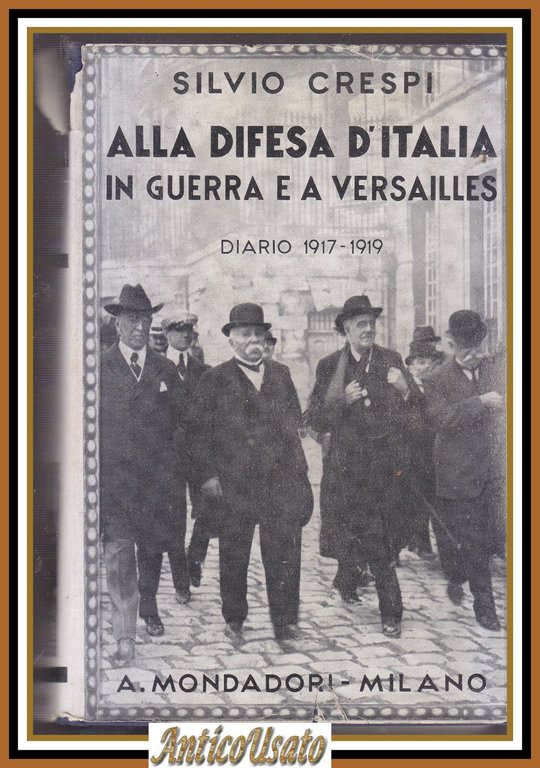 ALLA DIFESA D'ITALIA IN GUERRA E A VERSAILLES di Silvio Crespi 1937 Libro Diario