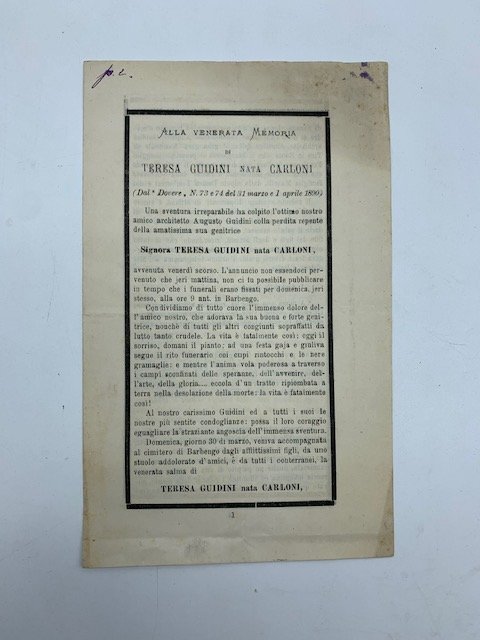 Alla venerata memoria di Teresa Guidini nata Carloni