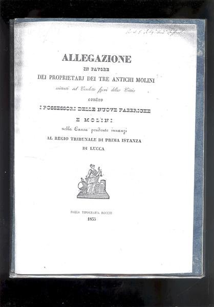 ALLEGAZIONE IN FAVORE DEI PROPRIETARJ DEI TRE ANTICHI MOLINI ESISTENTI SUL CONDOTTO FUORI DELLA CITTA' CONTRO I POSSESSORI DELLE NUOVE FABBRICHE E MOLINI.