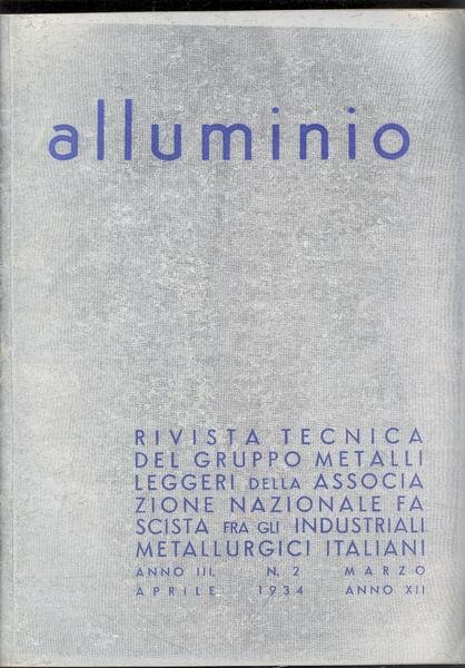 ALLUMINIO - RIVISTA TECNICA DEL GRUPPO METALLI LEGGERI.<BR>ANNO III. N.2 MARZO - APRILE 1934 ANNO XII