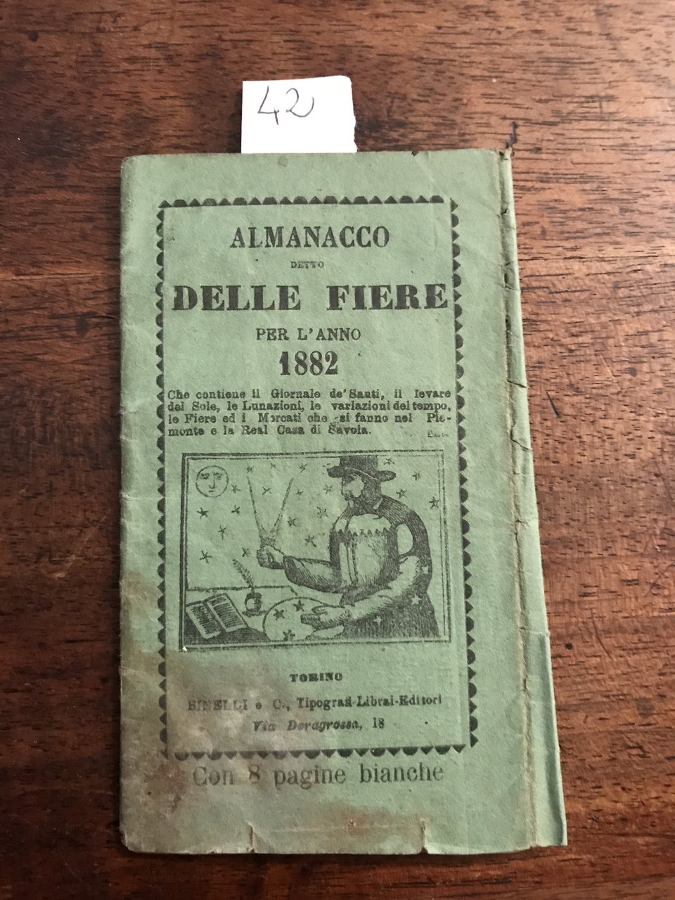Almanacco detto delle fiere per l'anno 1882 che contiene il Giornale de' Santi, il levare del sole, le lunazioni, le fiere, ed i mercati che si fanno nel Piemonte, la regola per coltivar orti e giardini, e la tariffa delle monete, ecc., ecc,